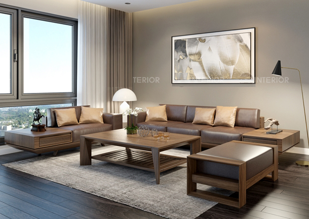 Ấn tượng đầu tiên của bạn khi tiếp xúc với bộ sofa này chính là nét đẹp mạnh mẽ, uy quyền, đẳng cấp toát lên trên từng đường nét thiết kế. Bộ nội thất phòng khách gỗ óc chó cao cấp bao gồm 1 ghế sofa dài, 2 sofa đơn, 1 bàn trà và hai bàn trang trí cân xứng hai bên. Đây là thiết kế dành riêng cho những căn hộ có diện tích phòng khách rộng rãi như biệt thự, penthouses hay nhà phố vv…