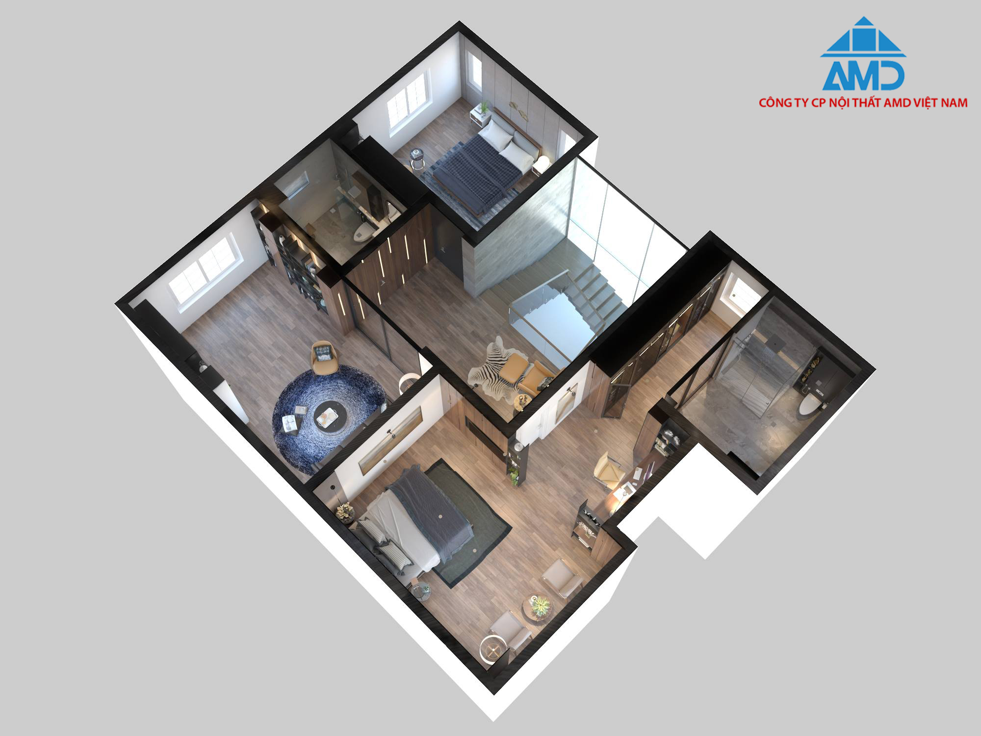 Trong bài viết lần trước, chúng tôi đã đưa quý độc giả tham quan một trong những công trình nhà ở tại Hải Dương, được Nội thất AMD thiết kế mang đậm màu sắc của gỗ óc chó. Tuần này, mời các bạn tiếp tục khám phá các không gian khác của căn nhà qua những thiết kế 3D đầy trau chuốt dưới đây: